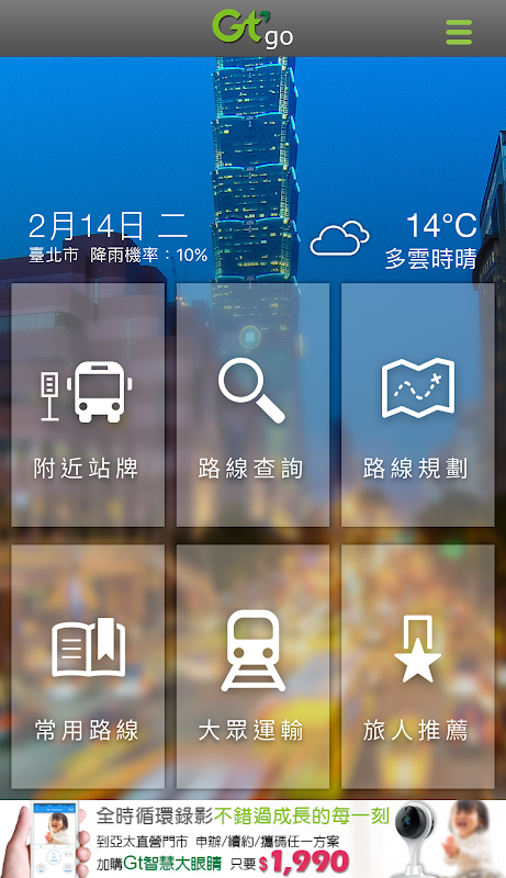 Gt go是亞太電信提供全方位交通與旅遊便利服務,可查詢附近公車和公車到站資訊以及Ubike和停車場,下載APP註冊會員免費使用4G Wi-Fi上網3小時