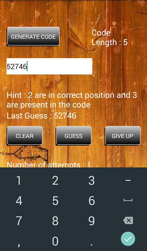 Your objective is easy, try finding the code in least number of guesses. After every guess a hint would be provided which helps to remove ambiguity of what the code could be.