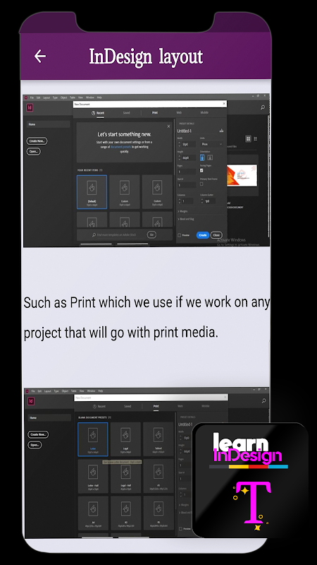 Through this application, guide designers to InDesign , you will have all the information regarding InDesign and you will be able to start your own business