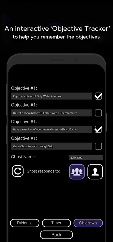 *'Evidence Tracker' which adds an interactive UI to make it easier for you to find out what kind of ghost you are dealing with.