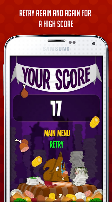 Gummy the toothless werewolf is back with a big appetite, just in time for an all-you-can-eat Thanksgiving feast. He's recovered from his trip to the evil dentist Dr. Sweet Tooth, now hungrier than ever... and with a bit of a king complex. He wants to be served. As his attendant for the night, you need to help Gummy satisfy his hunger by feeding him whatever he desires. Feed him as much Thanksgiving turkey, ham, green beans, pumpkin pie, cranberry sauce, and corn as you can in 60 seconds in the Full Course mode, or try out the Selective Eater mode and feed him only green beans, being sure to avoid tapping any meat, cranberry sauce, pumpkin pie, or corn.