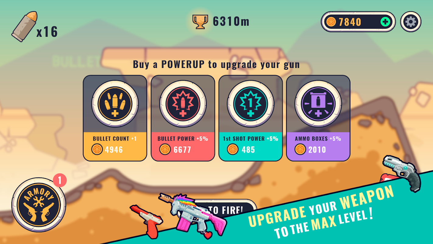 Doğru yönü seçin, ateş etmeye başlayın ve zor kazandığınız paralarınızı silahlarınızı ve istatistiklerini yükseltebilecek güçlendirmeler için harcayın.