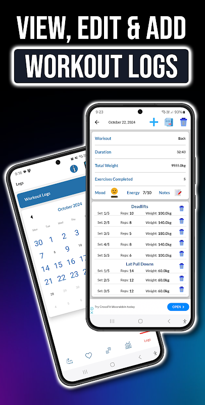 Antrenman günlüklerinizi görüntüleyin, ekleyin ve düzenleyin; istatistiklerinizi, egzersiz hacminizi ve geçmişinizi karşılaştırın. Ağırlık kaldırma planınızı oluşturun ve forma girin - Kendinizin daha güçlü ve daha özgüvenli bir versiyonunu oluşturun!