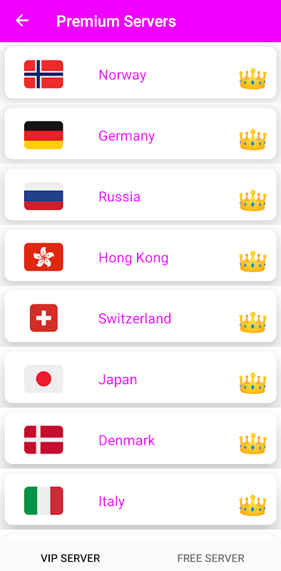 We have built a global VPN network included America, Europe and Asia, and expand to more country soon. Most servers are free to use, you can click the flag and change server as any times as you want.