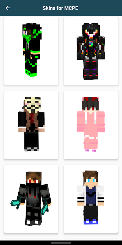 Minecraft Pocket Edition için yüksek kalitede Hacker Skins. Bu dış görünüm paketleri uygulamasında, en sevdiğiniz oyunlar için benzersiz bir Hacker dış görünümü seti alacaksınız. Ve Minecraft için birçok popüler Hacker dış görünümü bulacaksınız. Minecraft için Hacker Skins, eski görünümlerinizi tek bir tıklamayla harika görünümlere dönüştürmenize yardımcı olacaktır. Kızlar ve erkekler için hacker tarzında havalı görünümler hazırladık. Uygulamamızı indirin ve tek tıklamayla oyununuza popüler görünümleri yükleyin.