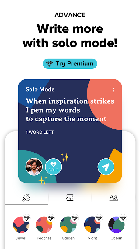 - Use unique backgrounds and fonts and write solo with HaikuJAM Premium