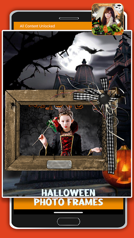 "Cadılar Bayramı Resim Çerçeveleri" Cadılar Bayramı resmi ile uygulama kolaj fotoğraf basit bir arayüz ile, herkes için çerçeveler ve kolay, harika Cadılar Bayramı günü resmi yaratacak kullanmaktır yüksek çözünürlükte çerçeveler