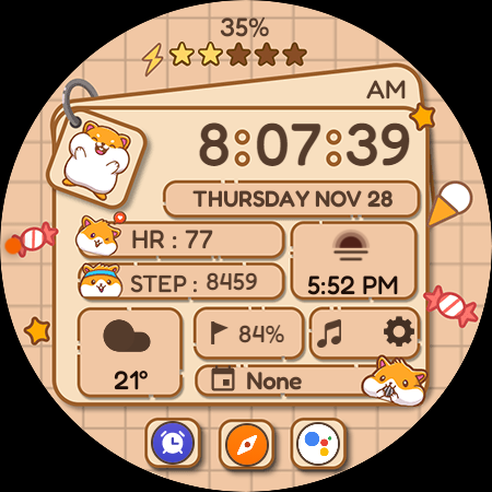 Evcil hayvan severler için Hamster Blocks saat yüzü. Wear OS saati için. Özellik :