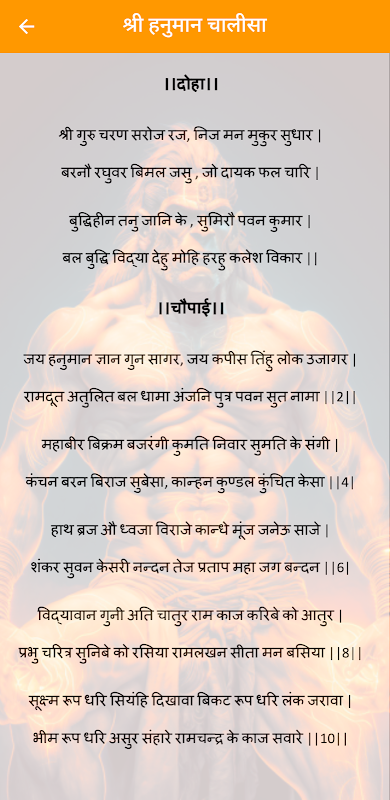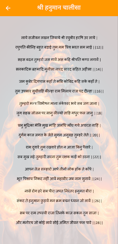 Uygulama, güçlü ilahiyle birlikte okumayı, anlamayı ve şarkı söylemeyi kolaylaştırarak Hintçe Hanuman Chalisa şarkı sözlerini okuma kolaylığı sağlar.