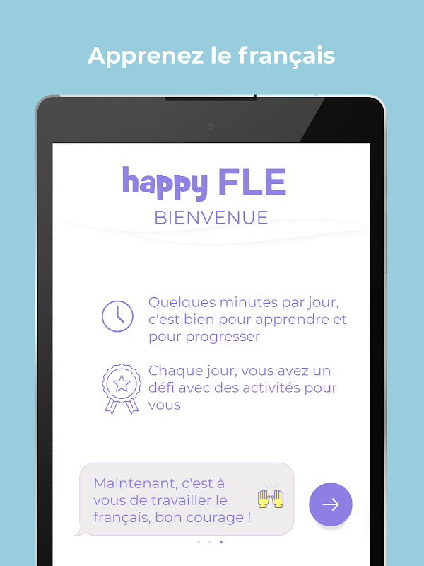 Mutlu Fle, Fransızca yeni başlayanlar için bir yabancı dil (seviye A1) olarak Fransızca öğrenmek için bir uygulamadır.