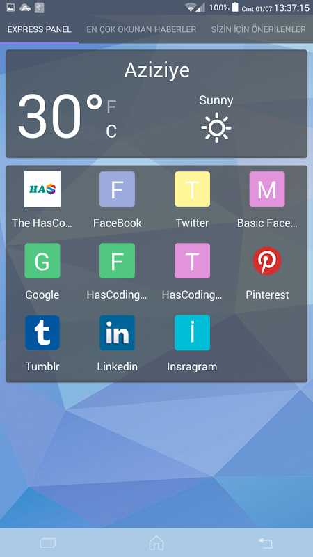 Browser ana sayfasında hava durumu gösteren bi ekran hemen altında yer işaretlerinize hızlı ulaşabileceğiniz bir arayüz