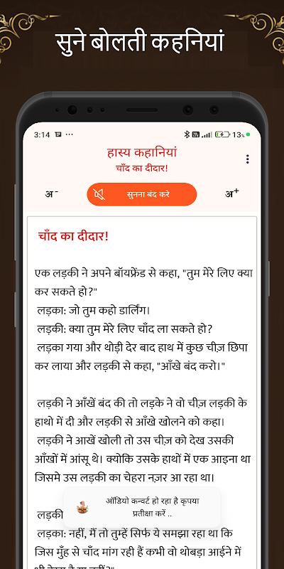 Bu Hintçe hikaye kitabı uygulaması Hintçe çok iyi komik hikayeler bazı büyük veritabanı içerir.