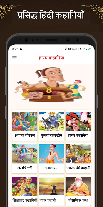 Bu uygulama, çeşitli kategorideki tüm Hint hikayeleri içeren, bazıları şunlardır: -