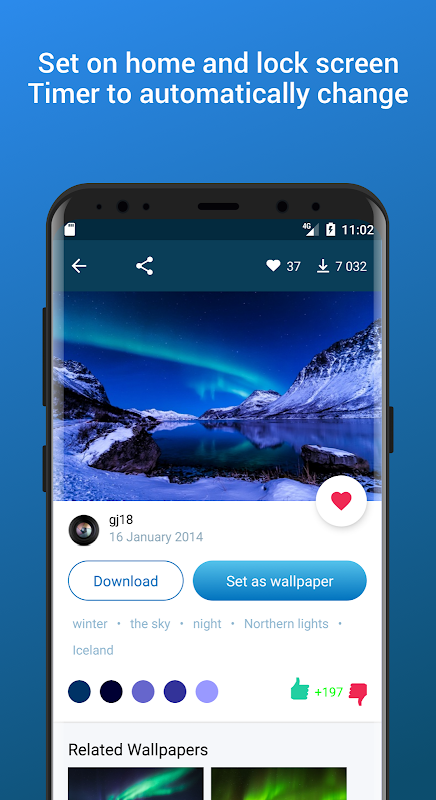 - belirtilen aralıkta otomatik arka plan değişikliği. Favori veya rastgele duvar kağıtlarınızı kullanabilirsiniz;