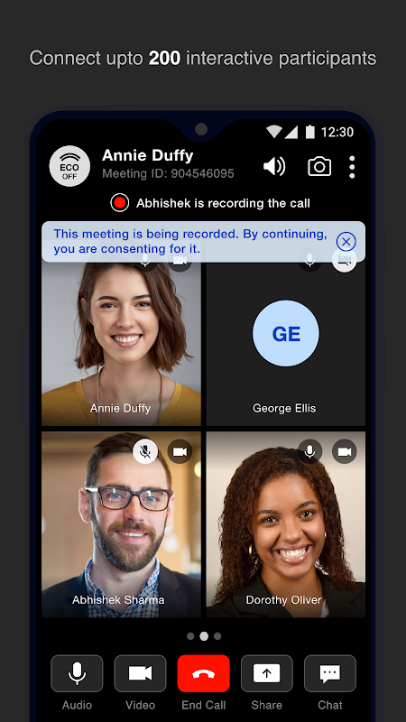 HDVC Wave is HD meeting conferencing app with video and screen sharing for up to 200 interactive participants and up to 10K view only participants