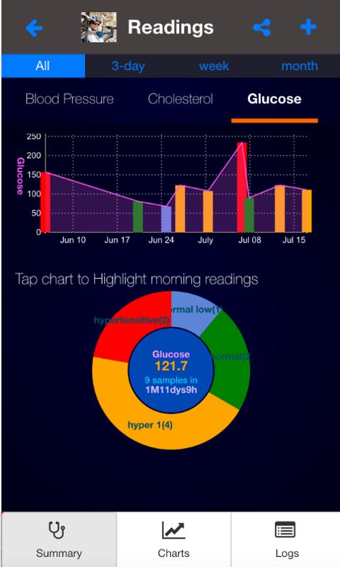Tek bir yerde Log / Chart Kan Basıncı, Kolesterol ve Glikoz