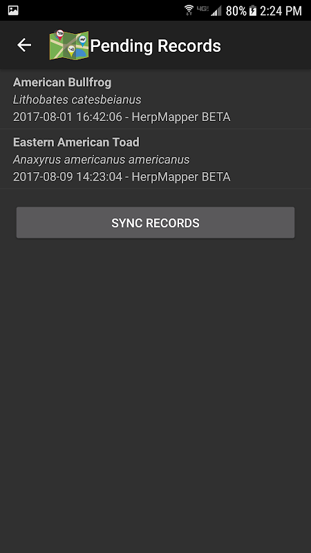 HerpMapper mobil uygulama düzgün konumların kaydedilmesi için kablosuz veya hücresel hizmet gerektirmez - Dışarıda (birçok HerpMapper kayıtları dünyanın uzak köşelerinde kaydedilmiştir) ne zaman uydu iletişim kalır telefonunuzun yerel GPS cihazı kullanır. Geri kablosuz veya hücresel aralıkta işlemleri başladıktan sonra, HerpMapper veritabanına (senkronizasyon) topladığınız kayıtları yükleyebilirsiniz. Yüklenen sonra, HerpMapper web (www.herpmapper.org) adresinin kayıtların her türlü görebilirsiniz. Bir HerpMapper hesabı oluşturmak, hızlı, basit ve ücretsizdir ve siz, buluntular takip ömür listesi oluşturmak, bilim ve Herp korunmasına katkı sağlamak sitesini ve mobil uygulamasını kullanabilirsiniz! Bir hesap oluşturma ve yükleme ve mobil uygulamayı kullanma yönergeleri, HerpMapper web sitesinde listelenmektedir.