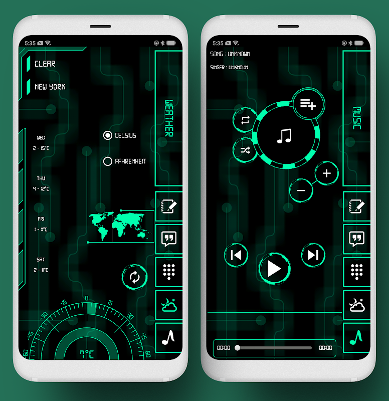 Hi-Tech Tab başlatıcısı, Hi-tech UI ile size ekran müzik çalarda sağlar. Tüm telefon müziğinize Ana ekrandan erişin.