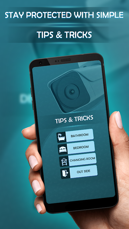 Bu şeffaf gizli kamera dedektörü, gizli kamera ve mikrofonları kolayca algılar. Gizli kamera, kullanıcılarının yalnızca bir Android telefon kullanarak gizli kamera ve mikrofonu algılamasına olanak tanır. Gizli kamera dedektörleri, gizli mikrofonlar veya gizli böcekler gibi dadı kameralarını tespit etmek için özel ipuçlarına ve püf noktalarına sahiptir. Kiralık evlerin gizli kameralar kurma özelliği vardır, bu yüzden endişelenmenize gerek yok, sadece dadı kamerasını açın ve bu gizli cihazları tespit edin.