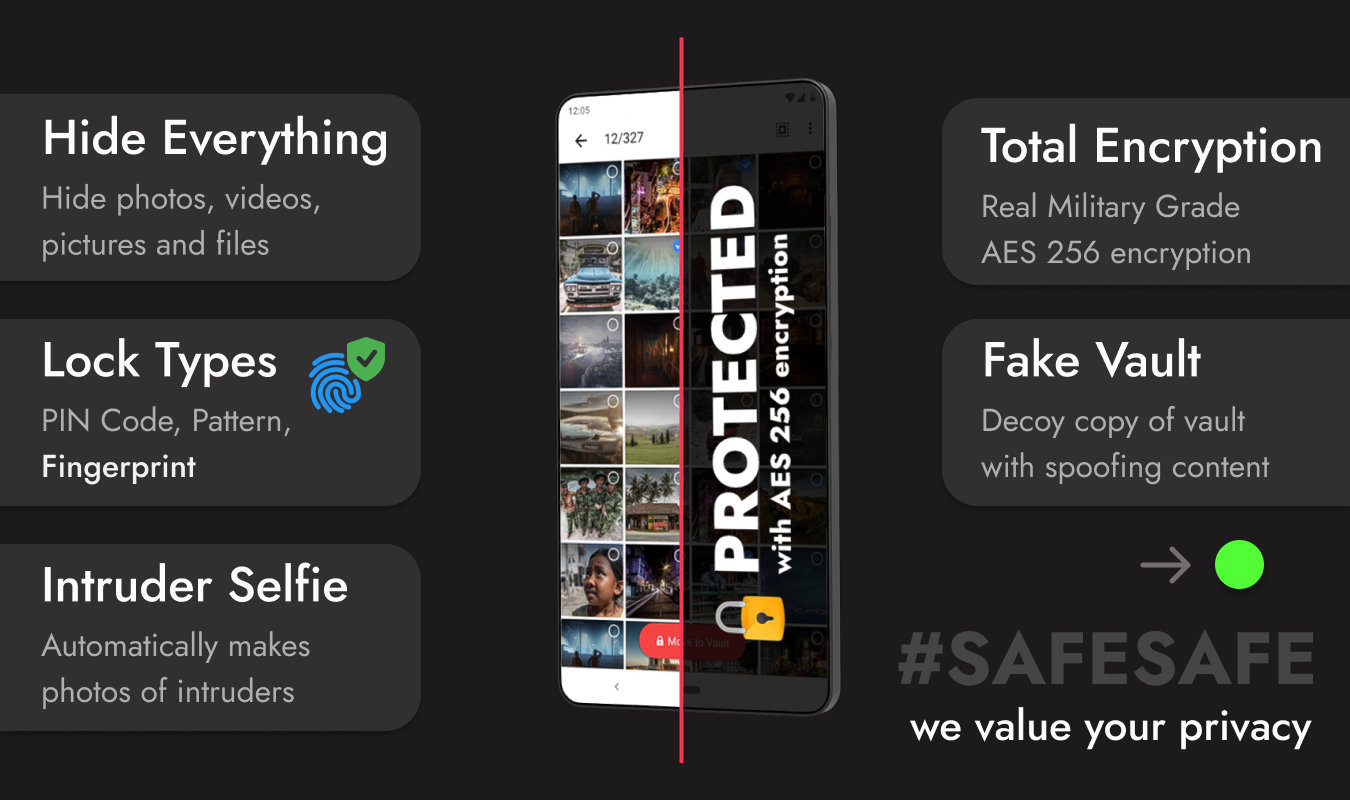 Fotoğrafları, videoları Gizli kasada gizleyin. Dosyaları şifrele. Özel tarayıcı.