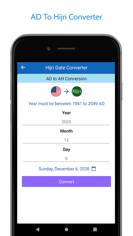 Hicri Tarihi İngilizce Tarihe Çevirir (Tarih Dönüştürücü çevrimdışı). Yaşı hesaplar