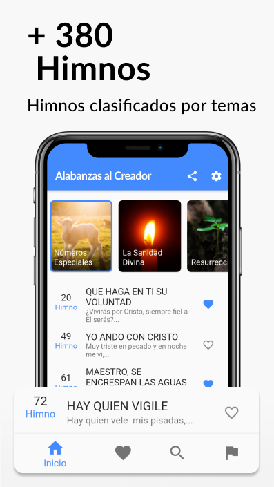 La aplicación del Himnario contiene más de 384 himnos y con la siguiente clasificación: