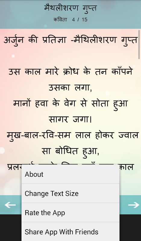 हिंदी कवितायेँ Hintçe Kavita, Hintçe Kavita (Şiir) Şiir Severler için bir uygulamadır. Bu uygulama, Hintçe Şiirinin tanınmış ve ünlü isimlerinin şiirlerini içerir.