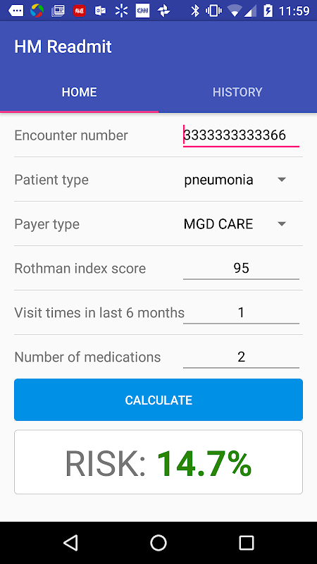 YZ tabanlı matematiksel modelimizi hastaların yeniden kabul oranının tahminine göre doğrulamak için HM Readmit uygulamasını geliştirdik. Bu uygulama klinik kullanım için değil, akademik çalışmamızı desteklemek için kullanılır.