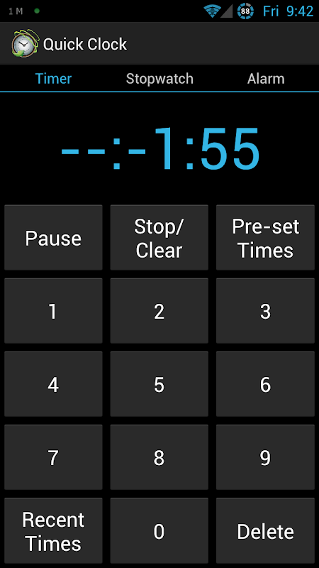 Quick Clock is what the Android Clock should have been. It adds in the much needed Timer and StopWatch functionality along with plenty of options to go with them.