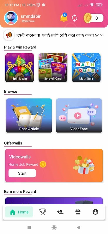 Home Job Reward App Offers, ödül kazanmak isteyen kullanıcılar için en iyi uygulamadır. ödül kazanmak için birçok seçenek var, kullanıcı indirme uygulaması + arkadaşını davet ederek para kazanabilir, ayrıca video izle ile kazan, basit uygulama güzel arayüzü kazan.