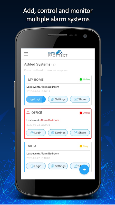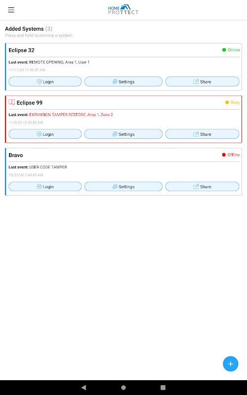 • Sistem paylaşımı – bir kullanıcı, Home ProTTect uygulaması aracılığıyla bir QR kodu oluşturarak sistemini paylaşabilir, böylece başka bir kullanıcı da bu sistemi ekleyebilir.