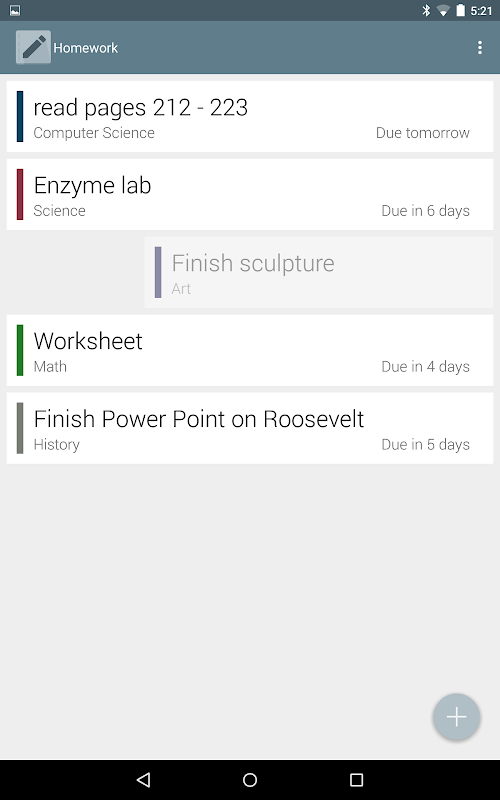 Homework is an easy-to-use, free, Homework itenerary. It is perfect for students of any age that want to stay organized and on time with every homework assignment, forever!