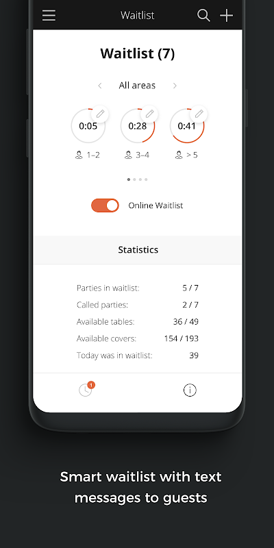 • Akıllı bekleme listesi: Konukları tabloları hazır olduğunda kısa mesajla gönder