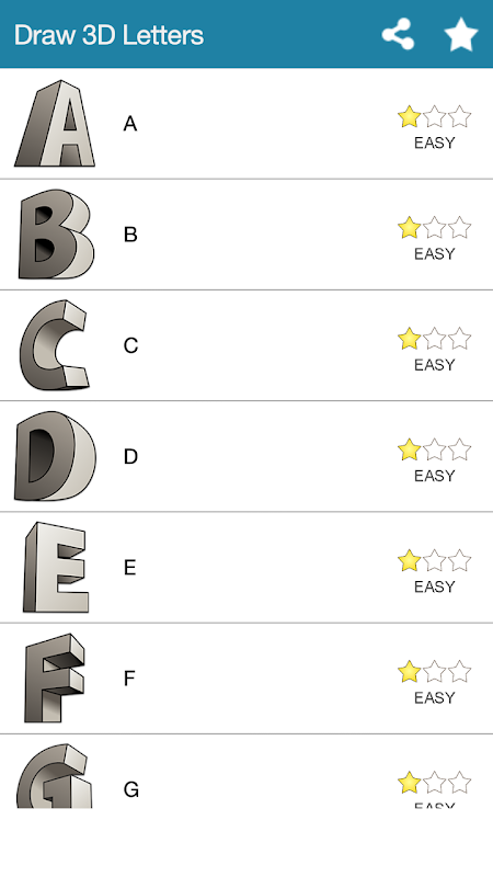 This app is a fun activity for teaching your kids how to draw. It includes a large collection of drawings 3D Letters classified by level of difficulty.