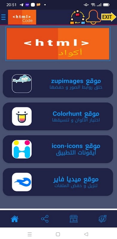 تطبيق HTML code هو احد التطبيقات المختصة في مجال البرمجة بلغة HTML