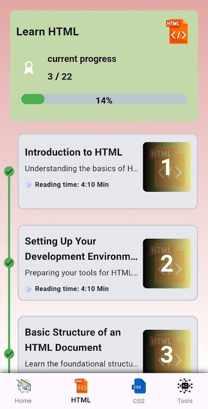 Sıfırdan çarpıcı web sitelerinin nasıl oluşturulacağını öğrenmek ister misiniz? Yeni Başlayanlar İçin HTML ve CSS 2024, web'in temel dilleri olan HTML ve CSS'de uzmanlaşmaya yönelik nihai rehberinizdir. İster programlamada tamamen yeni olun ister web geliştirme becerilerinizi geliştirmek isteyin, bu uygulama bilmeniz gereken her şeyde size adım adım yol gösterecektir.