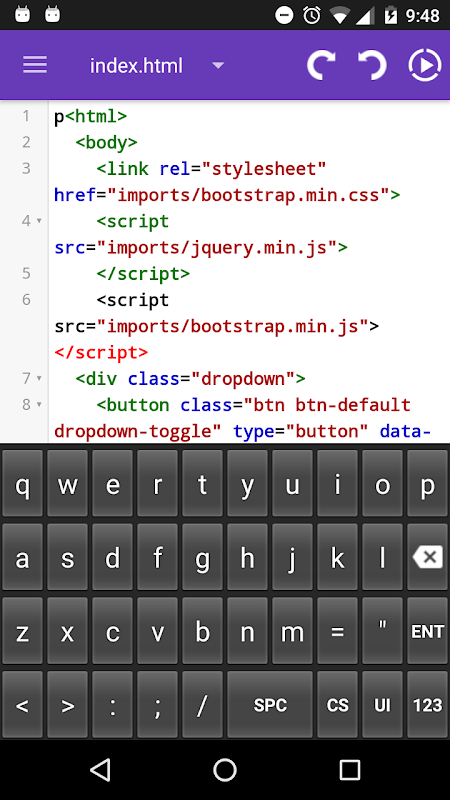 Programcı işi yapmak için kolayca bu uygulama kullanıcının tek bir tıklama ile CSS ve HTML etiketlerini üretebilir özel klavyeye sahip. Bu uygulama Bootstrap, angularjs ve jQuery temel örneklerini oluşturmaktadır. Üstelik bu uygulama mobil menüler birkaç örnek tutar.