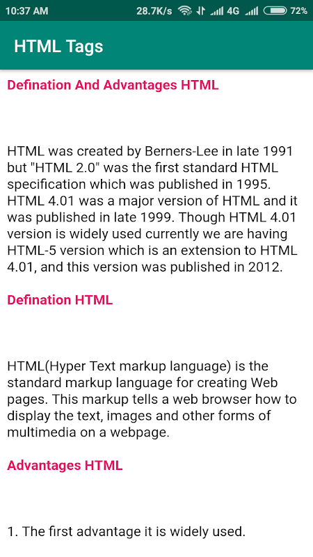 This app Html Tag with example.The Basic html Tag Provide JavaScript,css and InterView Follow Tutorial Html Tag with example