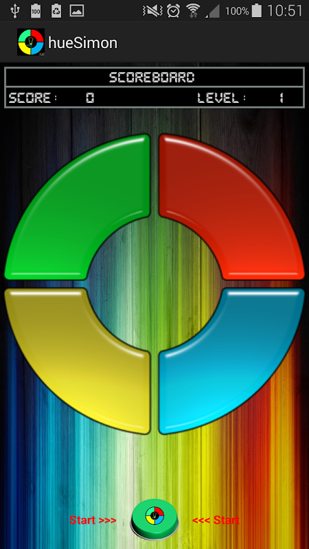 hueSimon will make a random sequence of colors, starting with only one.