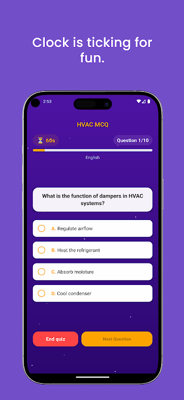 Bir HVAC teknisyeni, mühendislik öğrencisi veya sadece ısıtma, havalandırma ve klima sistemleri konusunda tutkulu musunuz? Başka yere bakmayın! HVAC QUIZ, HVAC kavramlarını kolaylıkla test etmenize, öğrenmenize ve ustalaşmanıza yardımcı olmak için tasarlanmış en iyi HVAC öğrenme uygulamasıdır.