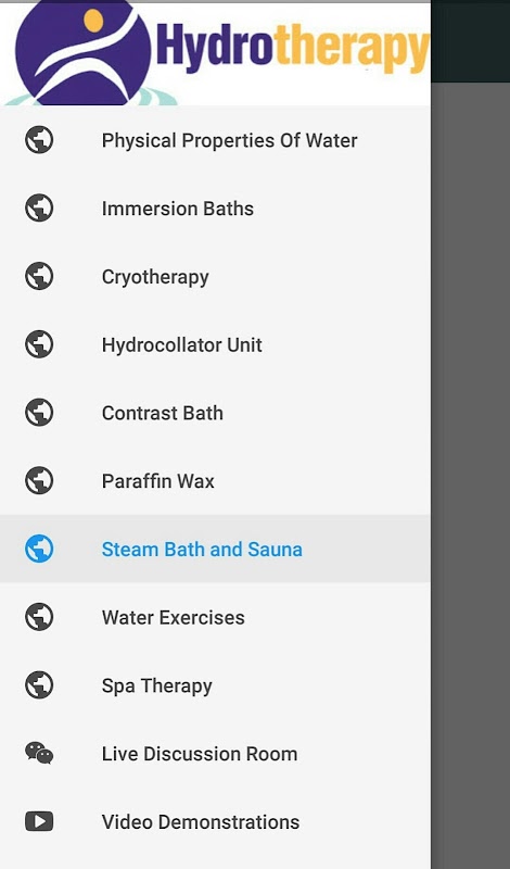(Cryotherapy , Contrast Bath , Hydrocollator Unit , Paraffin Wax , Underwater Exercises and more
