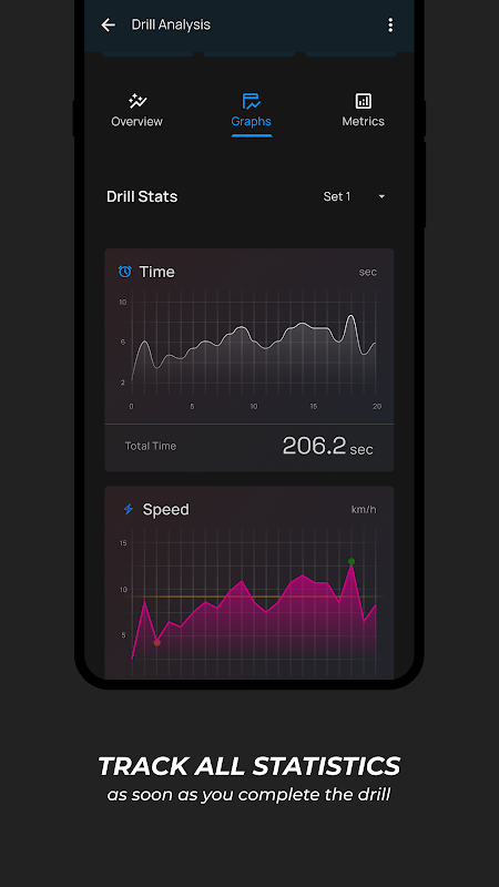 Uygulama canlı performans analizleri sunarken ilerlemenize gerçek zamanlı olarak tanık olun. Sezgisel grafik öğeleri aracılığıyla hız, çeviklik ve refleksler gibi ölçümleri takip ederek anında ayarlamalar yapmanıza ve en yüksek potansiyelinize ulaşmanıza yardımcı olur.