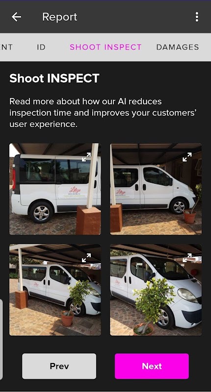 Araç kiralama - Kiralamadan önce ve sonra dijital, zaman damgalı bir rapor oluşturmak için i-DENT-ify'ı kullanın. Bunu, herhangi bir yeni hasar olup olmadığını kontrol etmek için arabanızı garaja bırakmadan önce de yapabilirsiniz.