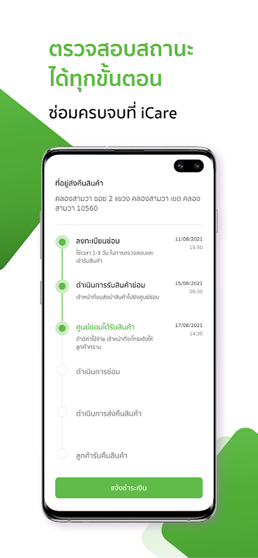 Durumu her adımda kontrol edebilirsiniz.Onarımları iCare'de tamamlayın.