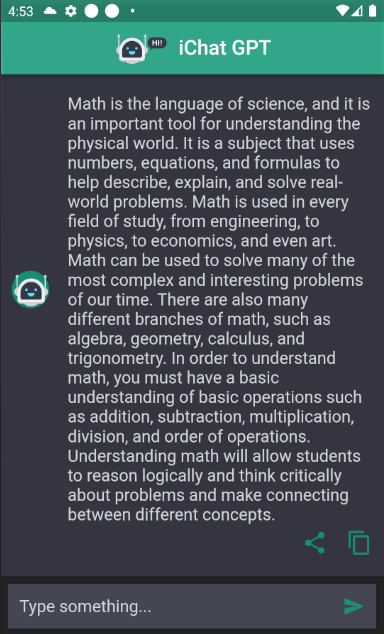 One of the main features of the application is that as an AI writer. It can understand and answer many types of questions because the AI system has been trained through a machine learning process with a large amount of data. This also makes it a perfect personal AI assistant to understand and respond to a variety of inputs in the most natural and human-like way. Whether you want to chat about a specific topic, ask for information or need help with a task, chatbot gpt will always answer you quickly and accurately. You can also copy responses from the AI chat bot and share them quickly. iChat GPT, AI Friend is an expert in every field, for example with a few prominent areas: