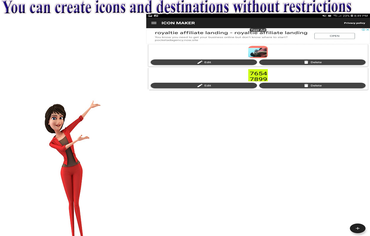 1- Click on the + sign in the icon maker app