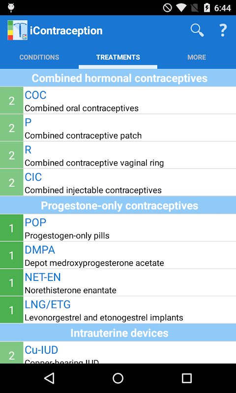 Sağlayıcıları hastaya göre koşulları seçebilirsiniz, ve App her yöntem için otomatik olarak bir kategori atar. Genel olarak ve tıbbi kriterlere, kategori 1 ve 2 her durumda ya da bazı konuları ve kategoriler 3 ve 4 ile bir tedavi kullanımına izin karşı tavsiye veya kullanım korusun. Daha fazla bilgi için bu Uygulaması veya belgelerine bakın.