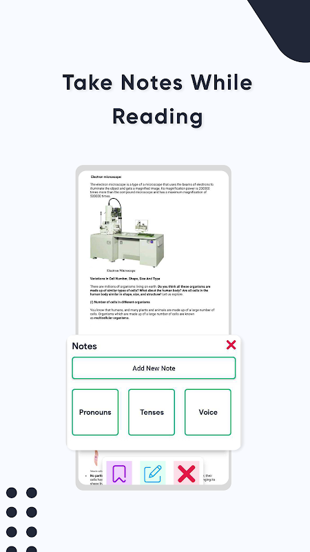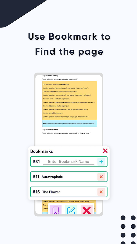 Bu uygulamada ders çalışırken önemli noktaları basit notlar halinde not edebiliyorsunuz ki bu sizin için büyük bir avantaj. Yer imleri özelliğini kullanarak, kaldığınız alanları ve sayfaları kolayca bulabilirsiniz.