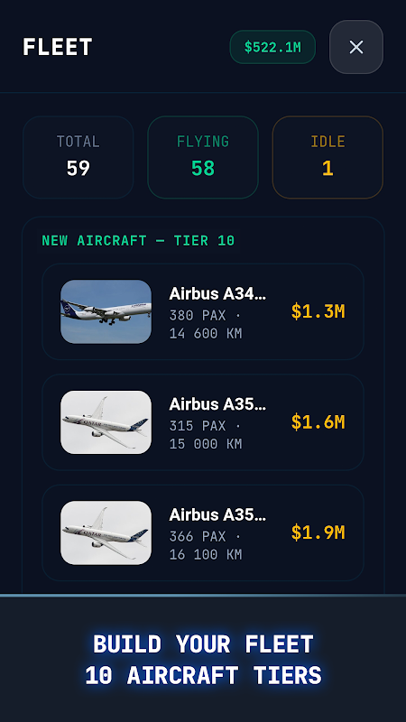 - Sonunda efsanevi amiral gemilerinin kilidini açın: 747-8, A380plus ve en iddialı operatörler için nadir premium uçaklar. Stealth 787, Altın A380, Concorde Neo ve Zero-G Orbiter gibi özel varyantları toplayın.
