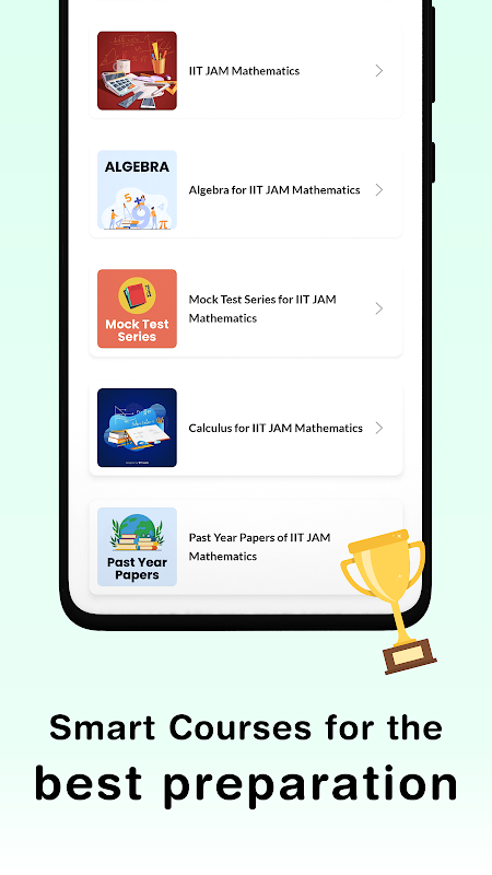 • IIT JAM (Matematik) sınav test serisi, en son sınav düzenine dayalı müfredat bazında benzersiz Hesap ve Cebir soruları sağlar